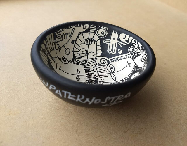 Desenho sobre cerâmica da série Mundos Intrincados.